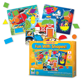Learn all about shapes with this fun puzzle game. Simply take turns selecting the proper shape to fit your puzzle board, and if you are the first to complete your puzzle with the right shapes and color, you win! Kids will develop shape recognition skills as well as cooperative skills through gameplay. Game includes four puzzle boards and 24 colored shapes.