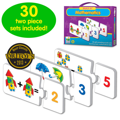 Learning numbers and basic math has never been this much fun. This colorful set of math puzzle cards provides children with an excellent introduction to number recognition, counting and basic addition and subtraction. The 30 puzzle cards feature 10 cards of counting, 10 cards of addition, and 10 cards of subtraction. The puzzles are self-correcting - only cards with the correct answer will fit together. A fun way to learn basic mathematics. Recommended for ages three and up.