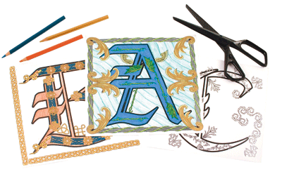 Medieval Letters Set Reproduce the classic 20cm letter designs and decorate with the included Medieval motifs. Study illuminated manuscripts from the middle ages. 26 letters and 2 design sheets included. Grade: 3-8