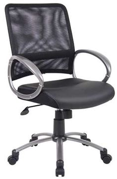 Breathable mesh back, padded leather seat. Contoured fixed arms. Pneumatic gas lift seat height adjustment. 360° swivel and dual wheel casters. Tilt tension control. Tungsten finish.