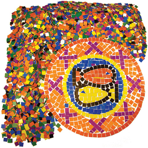 Mosaic Squares 10000 Pack Colourful 1cm (3/8") squares cut from stiff card. 10,000/pkg. Ages 4 and up.
