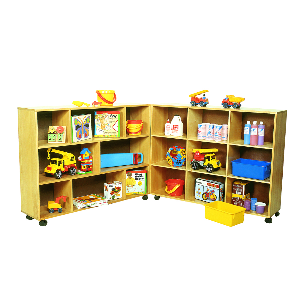 This multiple-use hinged unit has 17 compartments (8 on one side, 9 on other side). Conveniently swings open to be used as a room divider, as well as for storage. To secure the contents, simply fold and lock tight. Locking mechanism included. Baltic birch plywood construction. Easy to move.