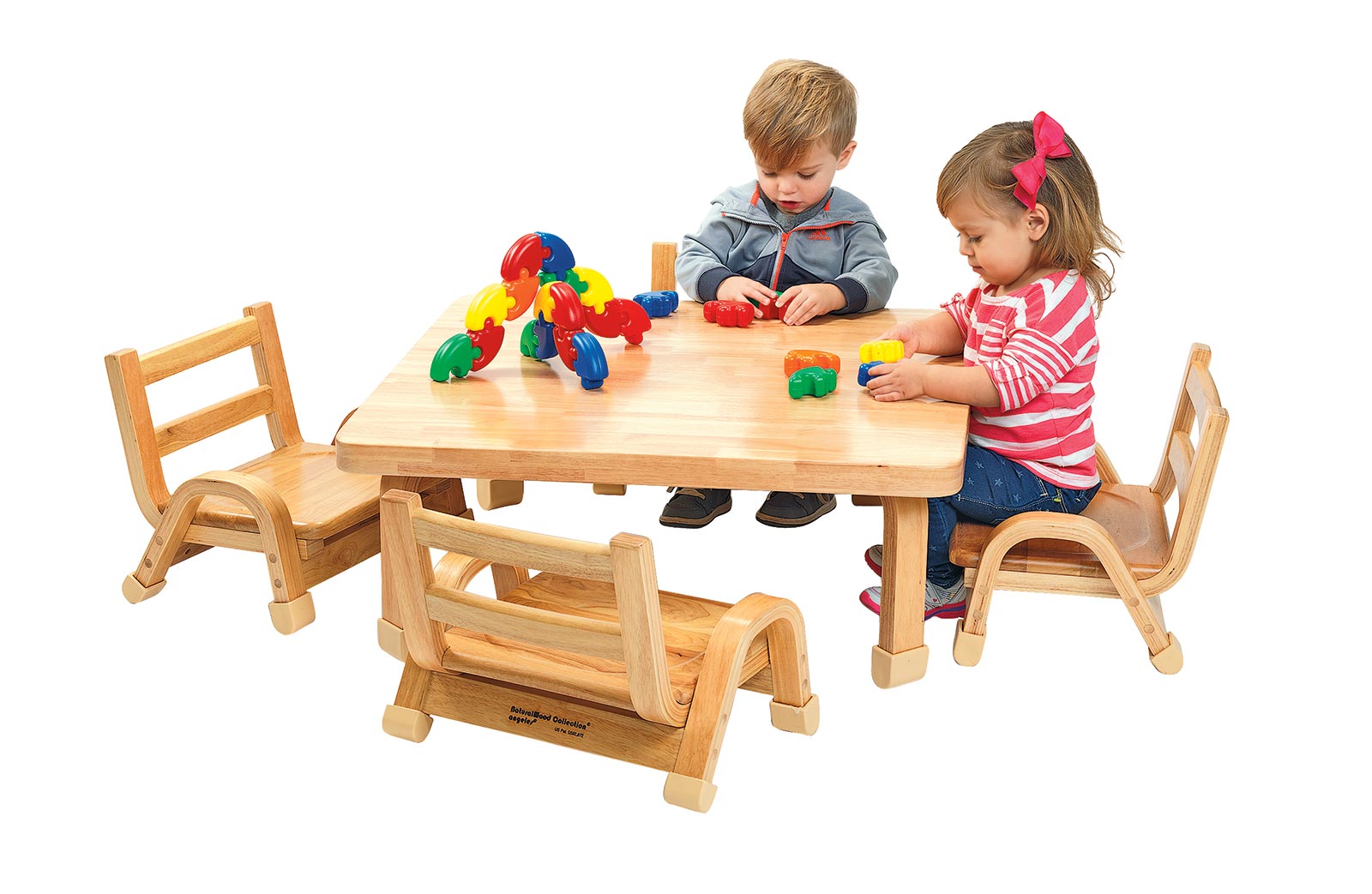 These all Naural Hardwood tables and chairs make a great addition to any classroom. These durable and warm pieces accent natural wood storage making the classroom a calm welcoming environment for all kids.
