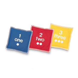 Numbers are as easy as 1-2-3 with this set of colorful canvas bean bags. Set of 10 square bean bags are boldly printed with the number and corresponding numeric word and dots. Includes suggested activities, and comes packaged in a reusable storage container.