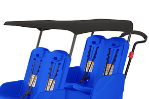 The Gaggle® Parade 4 Buggy is designed with superior safety convenience, with features ideal for daycare and high use commercial environments. The multi-passenger stroller buggy is equipped with 4 comfortable seats, each with a 5-point harness to take children out for rides, safely. The easy-to-steer design with a padded push-handle reduces strain on caregivers. Children will love climbing aboard the uniquely styled Gaggle® Parade 4 quad buggy.