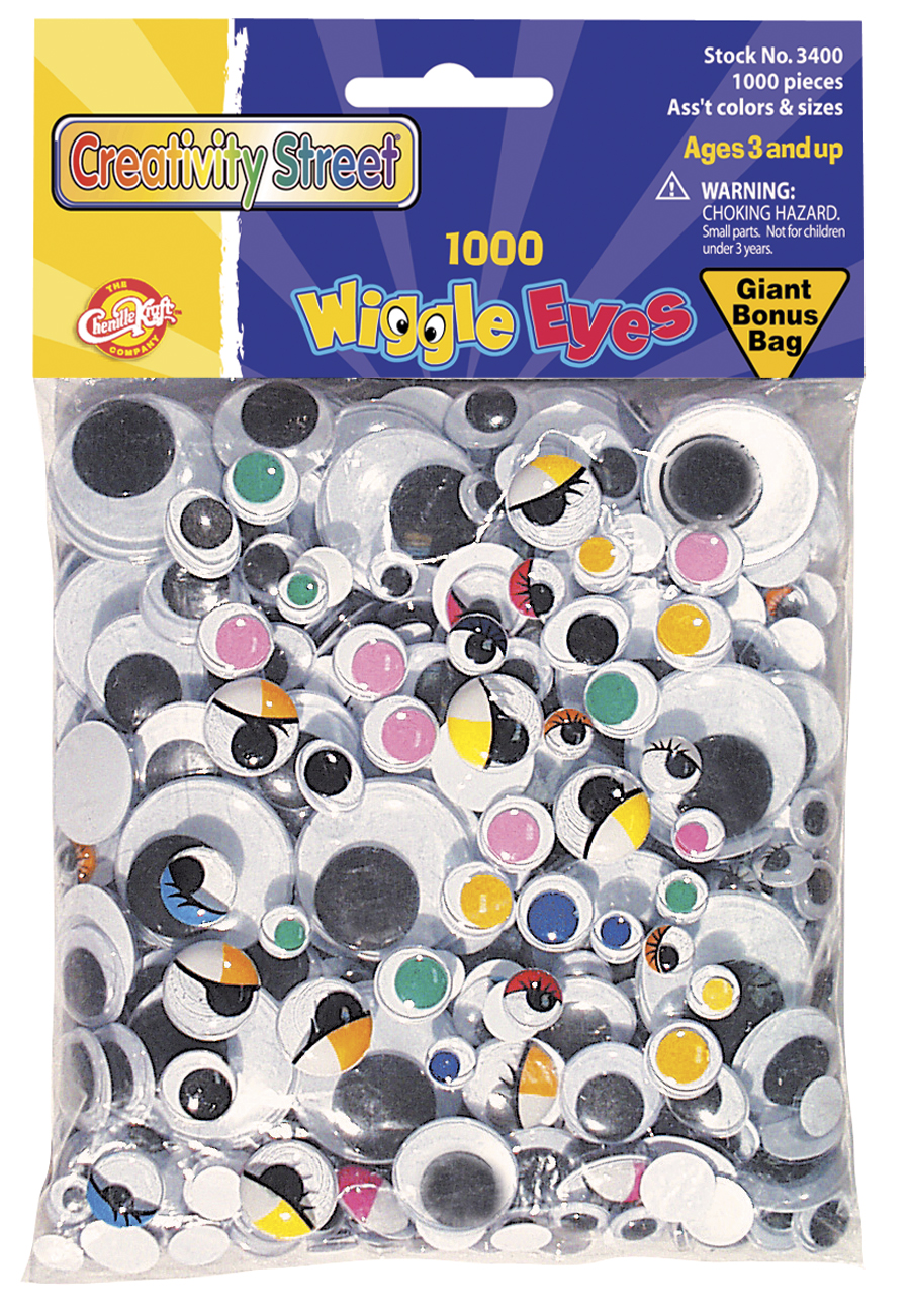 This Giant Bonus Bag contains over 1000 Wiggle Eyes in assorted shapes, sizes, and colors, including painted eyes.