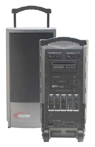 The PowerPro is the ideal PA for those who require an easy-to-use, portable sound reinforcement solution but do not have the budget, technical know-how or time required to operate a multi-component system. Designed for any kind of venue, the PowerPro is the first portable PA system to offer wireless transmission to any number of its powered companion speakers, meaning it has unlimited expandability to handle any situation. The PowerPro is a complete self-contained sound system with two built-in wireless mic receivers, a CD player, and cassette player/recorder. It features 90-watts RMS of power, with a single unit easily covering crowds up to 1,000 people or many more with added wireless PowerPro companion speakers.