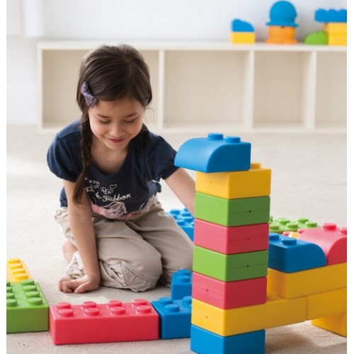 These fun, lightweight blocks are made of high quality non-toxic plastic materials, and come in red, blue, green, and yellow. Simple geometric shaped bricks can create endless themes and designs. This set includes 16 rectangular blocks, 8 square blocks, and 8 curved blocks. Largest pieces measure 21cm x 10.5cm x 6cm.