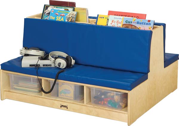 Provide youngsters with a comfortable nook to expand their reading proficiency while building their social skills. Includes a double sided couch with slots for ample book storage and two semi-circle benches to form a beautiful and practical literacy center.