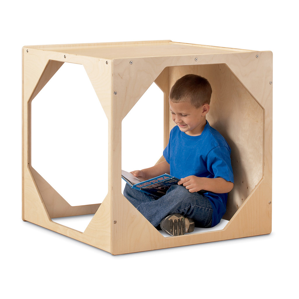 Students can escape from a busy classroom into the world of literacy. Three sides are open for supervision, back and top enclosed. Bottom is open. Meets ECER-R Space for Privacy standards.