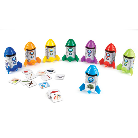 Have a blast reinforcing phonological awareness! Place a photo card in the rocket doorway, then sort cards that rhyme into the correct rocket. Sort by beginning and ending sounds, syllables and more!
