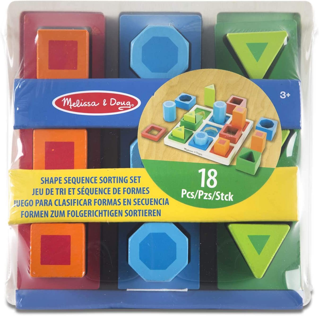 GREAT GIFT FOR AGES 3 TO 6: This Shape Sequence Wooden Sorting Set makes a great educational gift for children between 3 and 6 years old; add the Melissa & Doug See & Spell Learn Togeher to round out the hands-on, screen-free play experience.