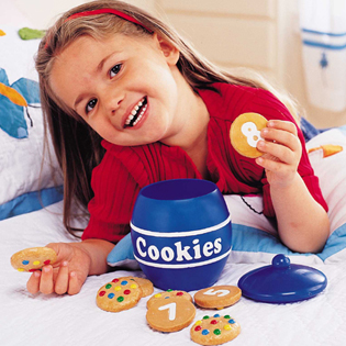 Smart Snacks® Counting Cookies™ Numbers and counting are a sweet treat! . # Features 10 cookies with numbers 1-10 on the bottom and the corresponding number of candy pieces on the top # Encourages kids to explore early math skills in treat-themed imaginative play # Includes sturdy plastic jar with lid for easy clean-up and storage # Soft plastic cookies measure 2" each # Ages 2-5
