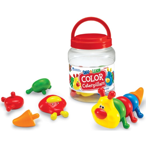 Snap-n-Learn Color Caterpillars reinforce colours and size relationships as kids play. Set includes 3 heads, 3 tails, 3 small body pieces, 3 medium body pieces and 3 large body pieces in assorted bright colours. As kids ages two and up build imaginative caterpillars, they'll be using patterning, matching and counting skills and strengthening fine motor skills at the same time! Snap-n-Learn Color Caterpillars also includes a storage bucket.