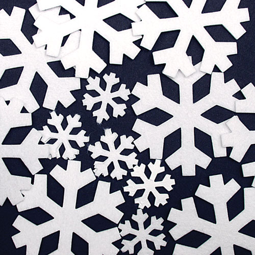 Snowflakes Felt Peel & Stick 14 pcs - Pretty white snowflakes have an adhesive backing so they will stick to most anything. Contains 14 pieces - 8 large, 6 small.