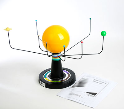 See the solar system in action! The Solar System Simulator is a three-dimensional model of our sun and the nine planets. The calendar at the base allows the positioning of planets according to the date and shows the relative position between individual planets and the sun.German version also available: 200-G.