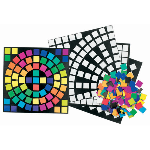 Spectrum Mosaics 4000 Pack - 14 colours. Create great mosaic art or use the squares to discuss colour theory. Includes 4 reproducible patterns and idea guide. 4000/pkg. Ages 4 and up.