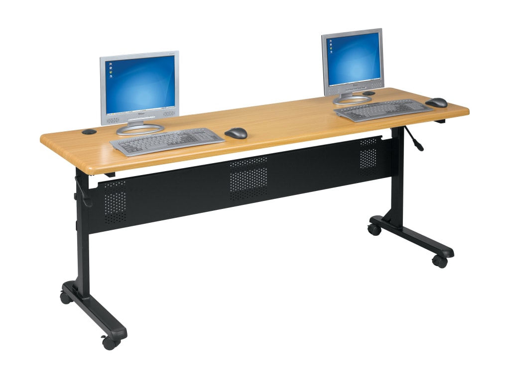 Flipper Folding Training Tables are excellent for conference or training rooms. These tables can instantly turn any working department into a conference room. These lightweight tables have ample space for taking notes and holding laptops.