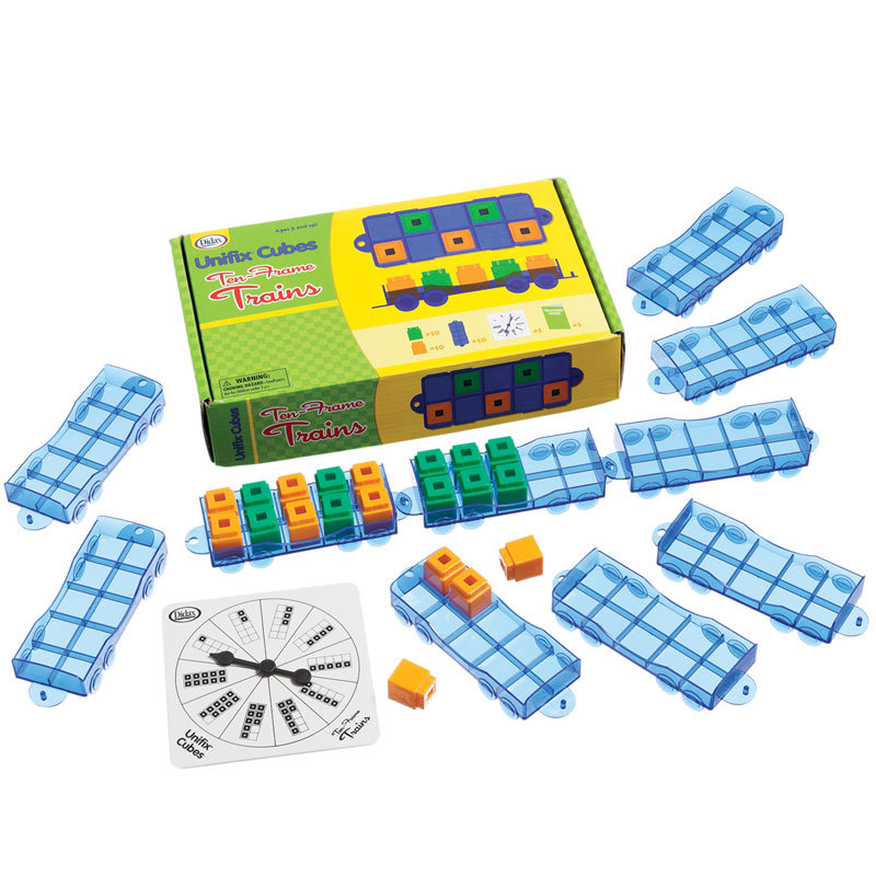 Students develop a concrete understanding of the concept of ten and patterning with these connecting train cars, each holding 10 Unifix Cubes.