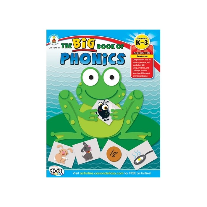 Make phonics fun using The Big Book of Phonics for grades K-3. This 352-page book features reproducibles, activities, and songs that cover blends, digraphs, vowel combinations, and prefixes and suffixes. Each unit includes a lesson plan, word lists, a song page, worksheets, and suggested games and activities. The book supports Reading First and NCTE standards.