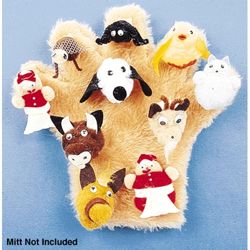 Set works with Monkey Mitt... There was an Old Lady Who Swallowed a Fly and a spider, bird, cat, dog, goat, cow, and horse! Features Velcro on both sides to hold all 10 characters.