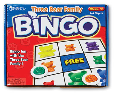 Three Bears Family Bingo Boards feature adorable bears in 3 sizes and 6 colors on one side and numbers 1-10 on the reverse. For 2-4 players. 36 markers, spinner and guide. Grades PreK and up. Grade: PreK-1