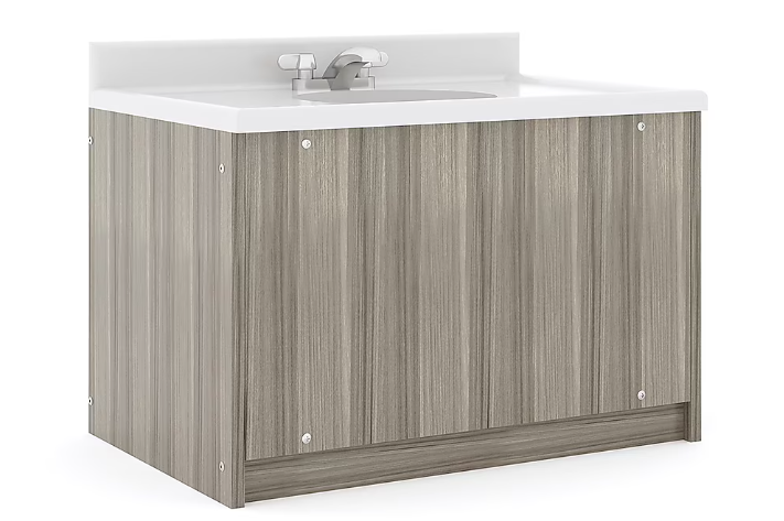 Give children a place to practise cleanliness and good hygiene with the Tot Mate TM8350R single laminate floor vanity. This vanity is constructed of durable laminate with recycled/reclaimed core materials and an attractive Maple or Shadow Elm Grey finish. It boasts a cultured marble top with an integral sink that will hold up well to wear-and-tear. The faucet and handles feature a chrome finish. Maintenance is made simple with a completely removable front access panel. This item comes unassembled. Specializing in the educational sector for decades, Tot Mate offers everything that you need for effective classroom storage and organization. With products ranging from lockers and book displays to play centers and mobile desks, Tot Mate boasts a comprehensive catalogue of classroom furniture. They utilize durable and easy-to-clean laminate construction with eco-friendly recycled materials as well as birch plywood for a natural wood look.