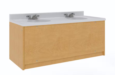 Give children a place to practise cleanliness and good hygiene with the Tot Mate TM8352R double laminate floor vanity. This vanity is constructed of durable laminate with recycled/reclaimed core materials and an attractive maple finish. The double sink design allows two children to wash their hands simultaneously. It boasts a cultured marble top with an integral sink that will hold up well to wear and tear. The faucet and handles feature a chrome finish. Maintenance is made simple with a completely removable front access panel. This item comes unassembled. Specializing in the educational sector for decades, Tot Mate offers everything that you need for effective classroom storage and organization. With products ranging from lockers and book displays to play centers and mobile desks, Tot Mate boasts a comprehensive catalogue of classroom furniture. They utilize durable and easy-to-clean laminate construction with eco-friendly recycled materials as well as birch plywood for a natural wood look.