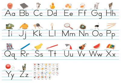 Traditional Manuscript Alphabet Line Each alphabet line measures over 14' (4.3 m) long when assembled. Seven 24 1/4" x 7 5/8" (61.6 x 19.4 cm) strips per package. Grade: ALL AGES