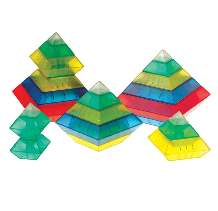 Build the WEDGiTS Jumping Frog in Translucent colors!! WEDGiTS Translucent Deluxe Set has 30 building blocks in five progressive block sizes that nest, stack, link and even wedge together. Kids create 3D sculptures, futuristic space craft, towering structures and mechanically levered creatures. The open-ended design of WEDGITS stimulates perception and reasoning skills as the different blocks are stacked, nested and aligned with the rhombus and octahedron shapes. This set comes with a product design booklet with over sixty unique product designs, including the famous WEDGiTS Jumping Frog.
