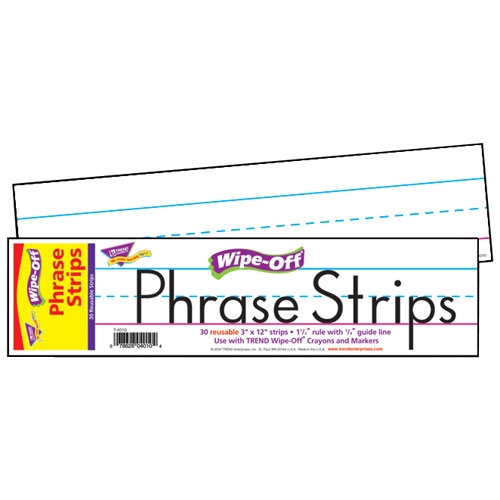 Teach writing skills, printing basics, and more! New 12" Phrase Strips allow learners to construct sentences, create study cards, and learn basic word structure. New colour format gives teachers added flexibility to colour code activities. Reusable Wipe-Off surface aids in learning and reinforces skills. Strips are 3" tall.