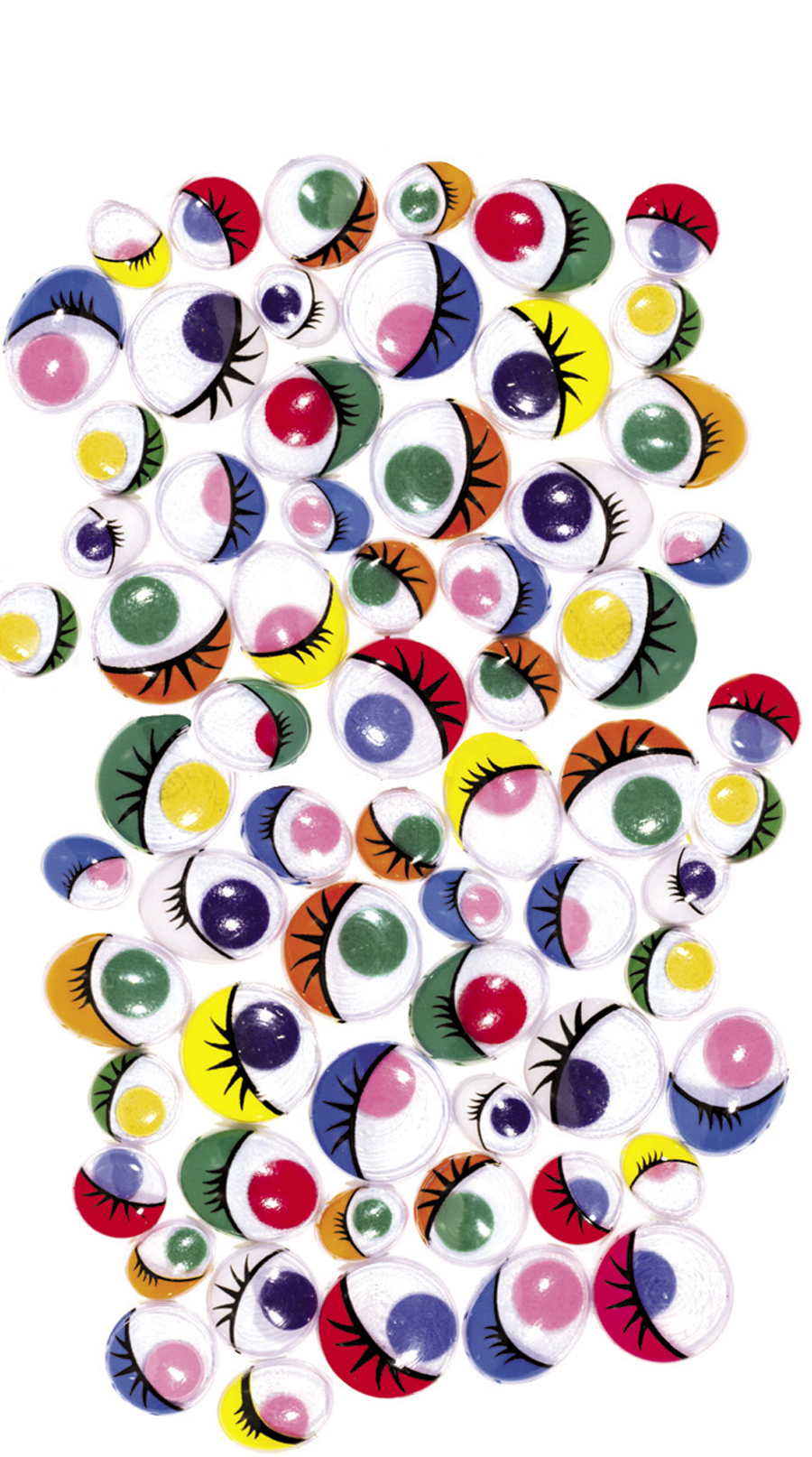 100 Round and Oval Wiggle Eyes in one package. Assorted colors and in the following sizes:
