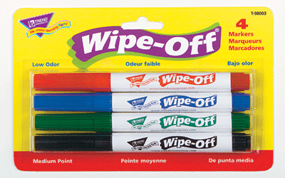 Wipe-Off Markers 4 colours. Standard colours. Grade: All