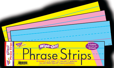 Wipe-Off Phrase Strips Multicolour These strips allow learners to construct sentences, create study cards, and learn basic word structure. 30 per pack. 12" x 3". Grade: All
